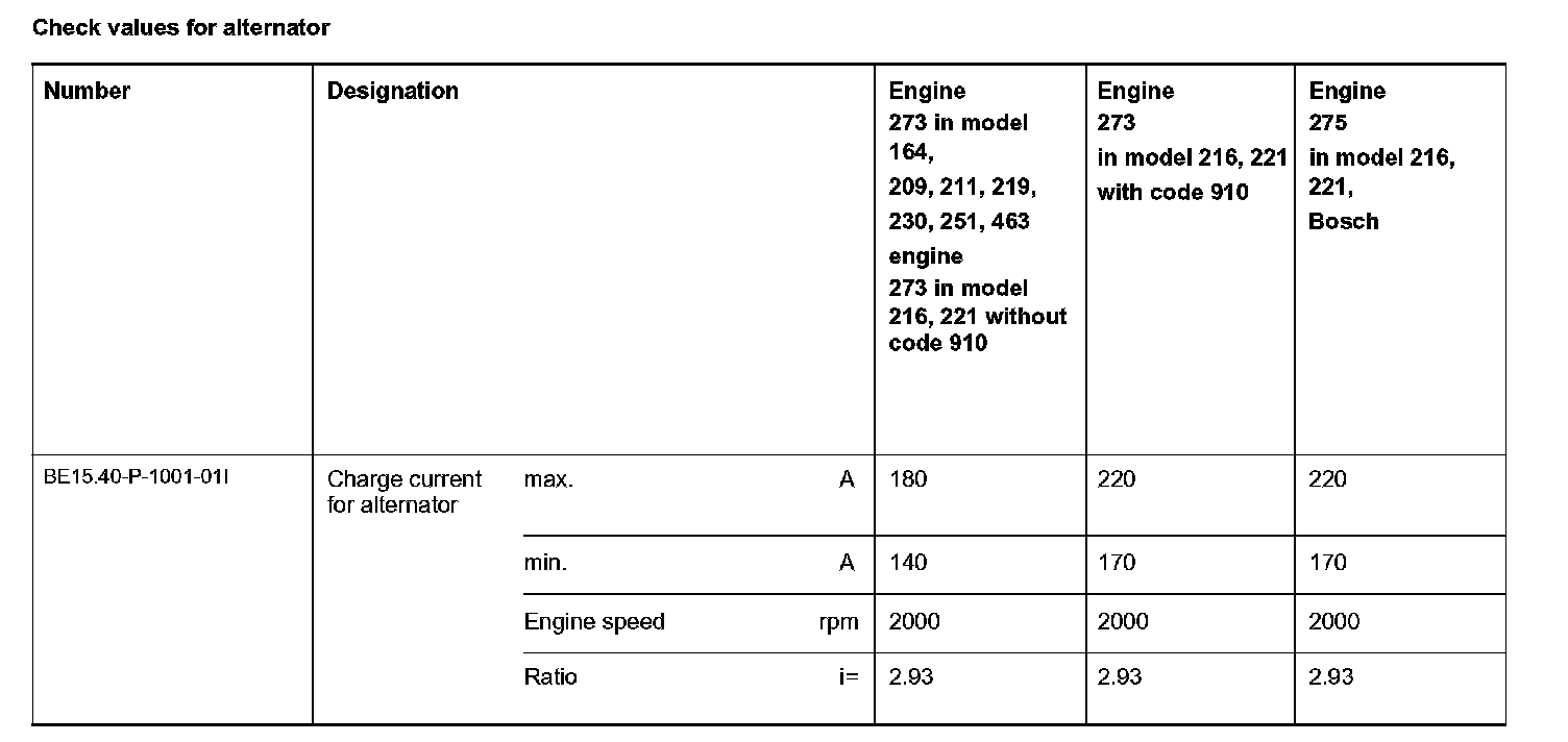 Check values for alternator: