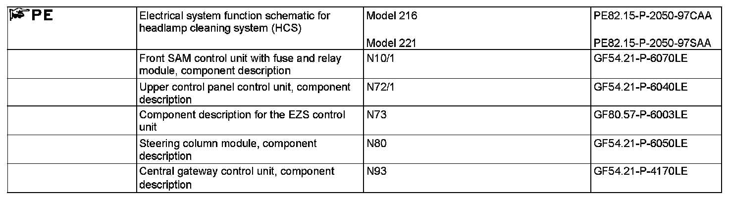 Following the fifth wash request by the combination switch (S4) the front SAM control unit with fuse and relay module (N10/1) actuates the headlamp cleaning system pump (M5/2).