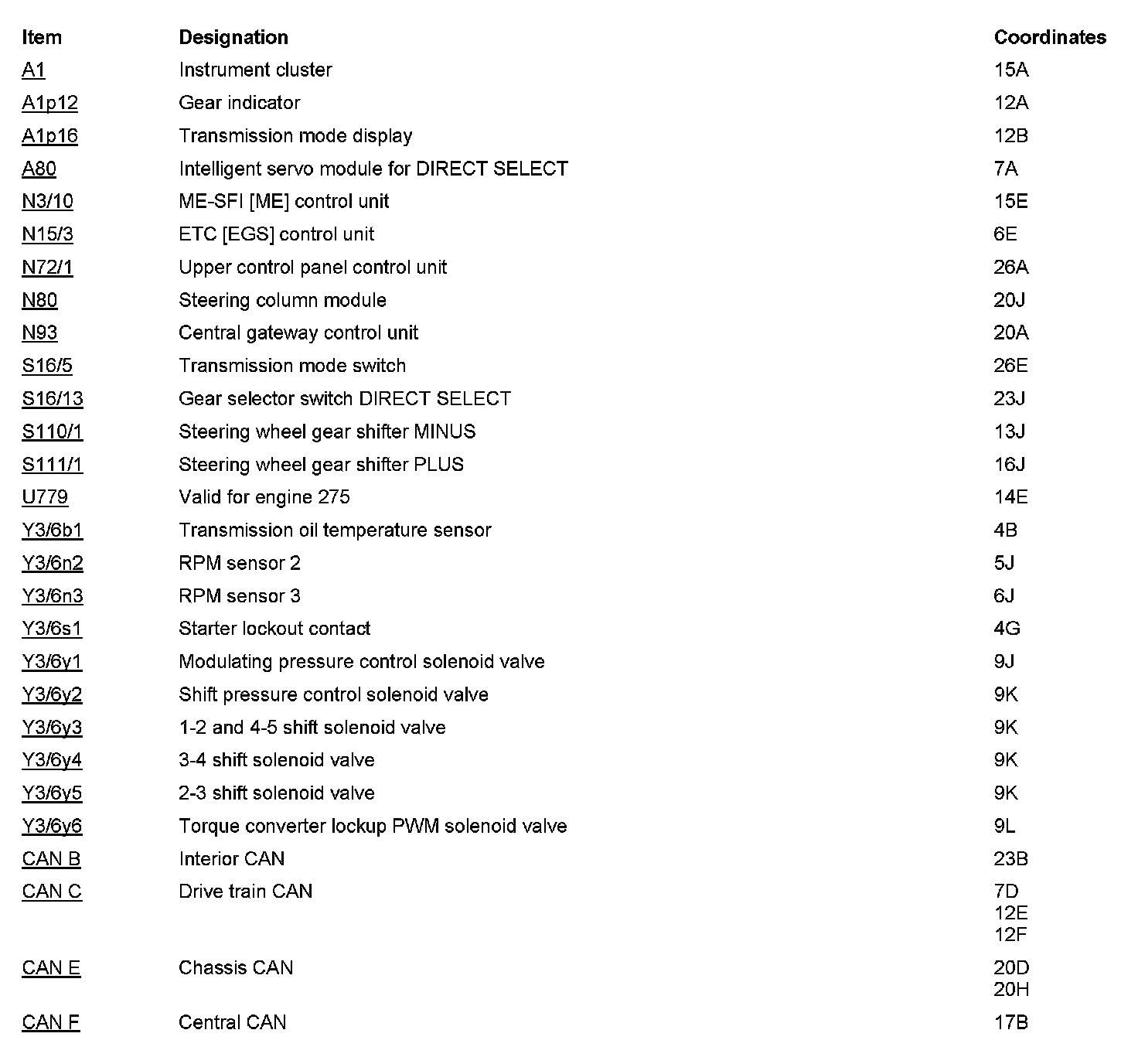 Component Locations: Component Location photographs can be found via their component names at the vehicle level. Component Locations