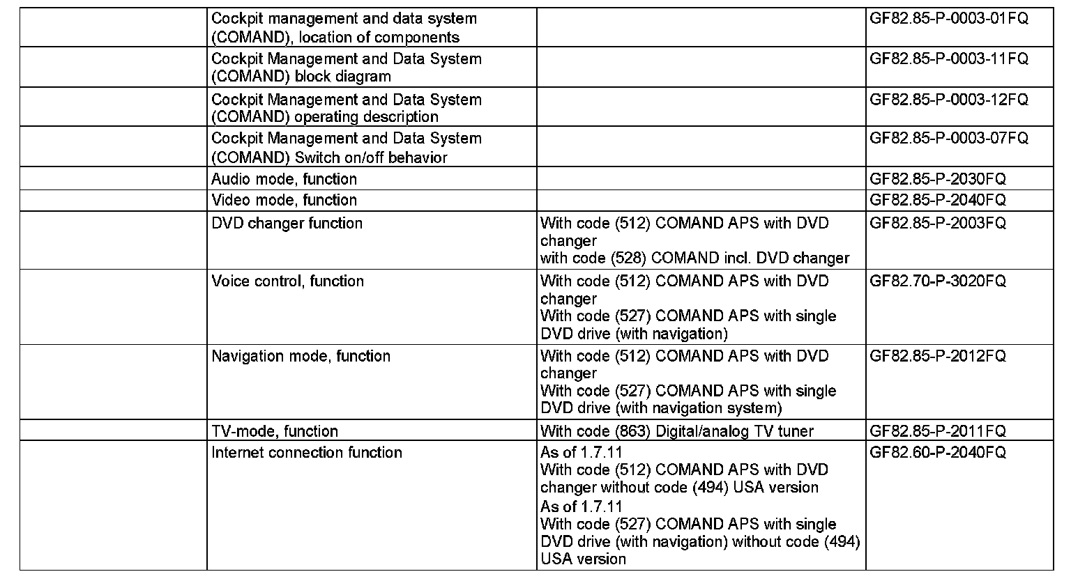 ^ Internet connection function (as of 1.7.11 with code (512) COMAND APS with DVD changer except code (494) USA version or code (527) COMAND APS with single DVD drive (with navigation) except code (494) USA version)