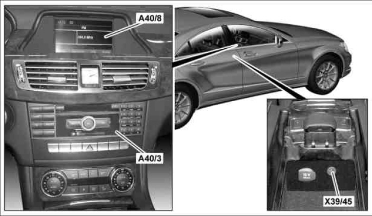 - Video signals via low voltage differential signal (LVDS) line to the Audio/COMAND display (A40/8).