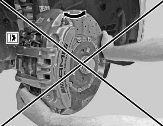 Only turn the steering by turning the steering wheel, not by pulling or pushing on the brake caliper and brake disk