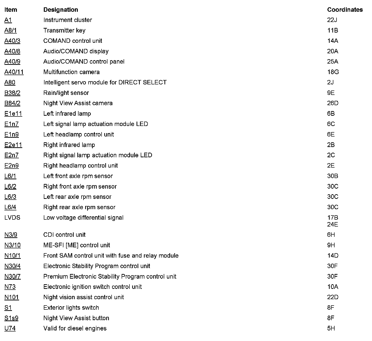 Component Locations: Component Location photographs can be found via their component names at the vehicle level. Locations