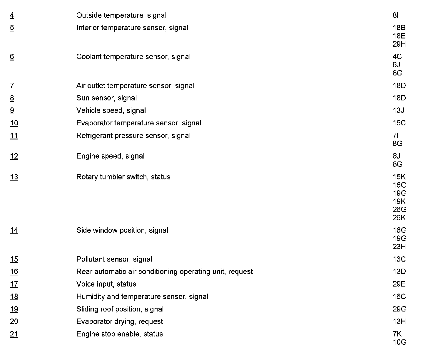 PE83.40-P-2052XAA Electrical Function Schematic For Automatic Air Conditioning, Input Signals