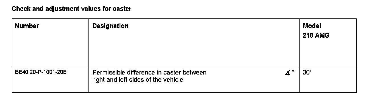 = Caster value 8° 20' (± 30')