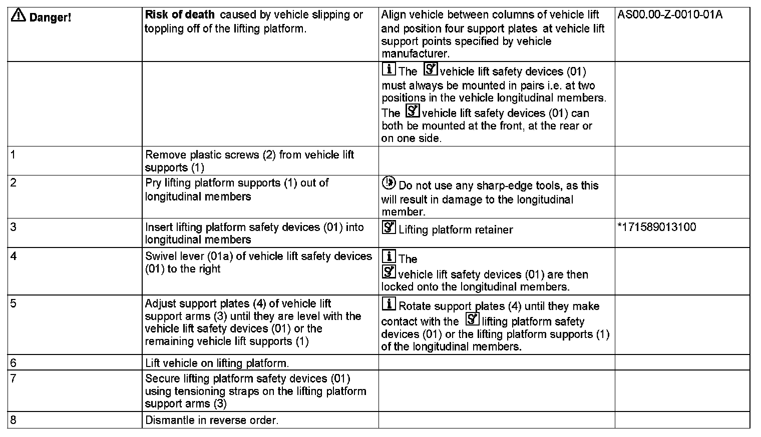 171 589 01 31 00, Vehicle lift safety device