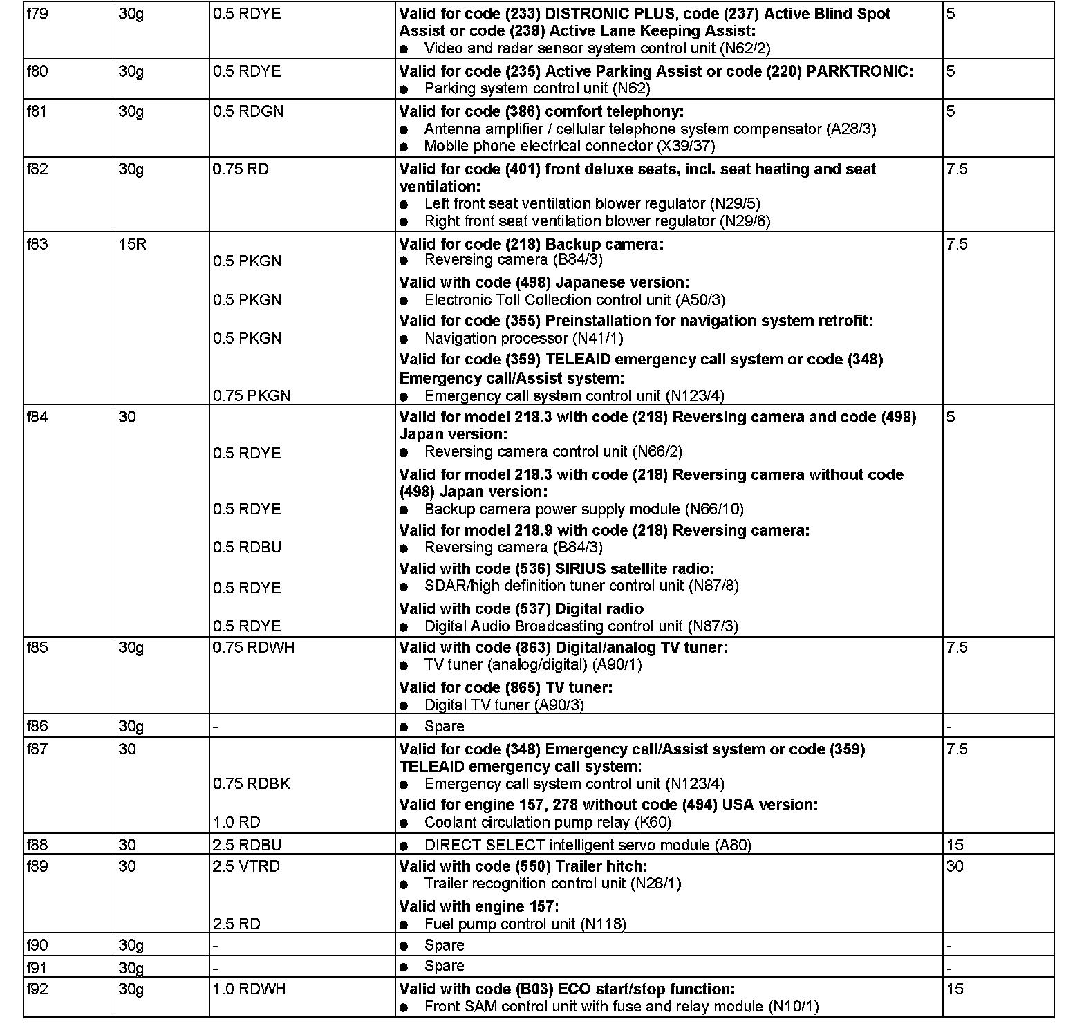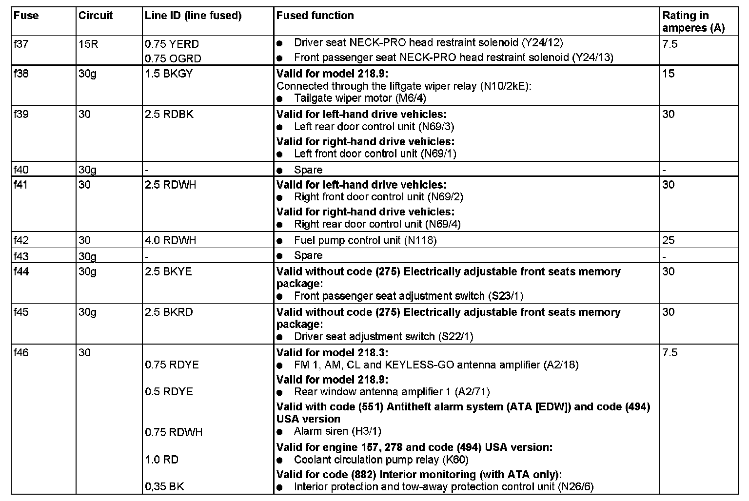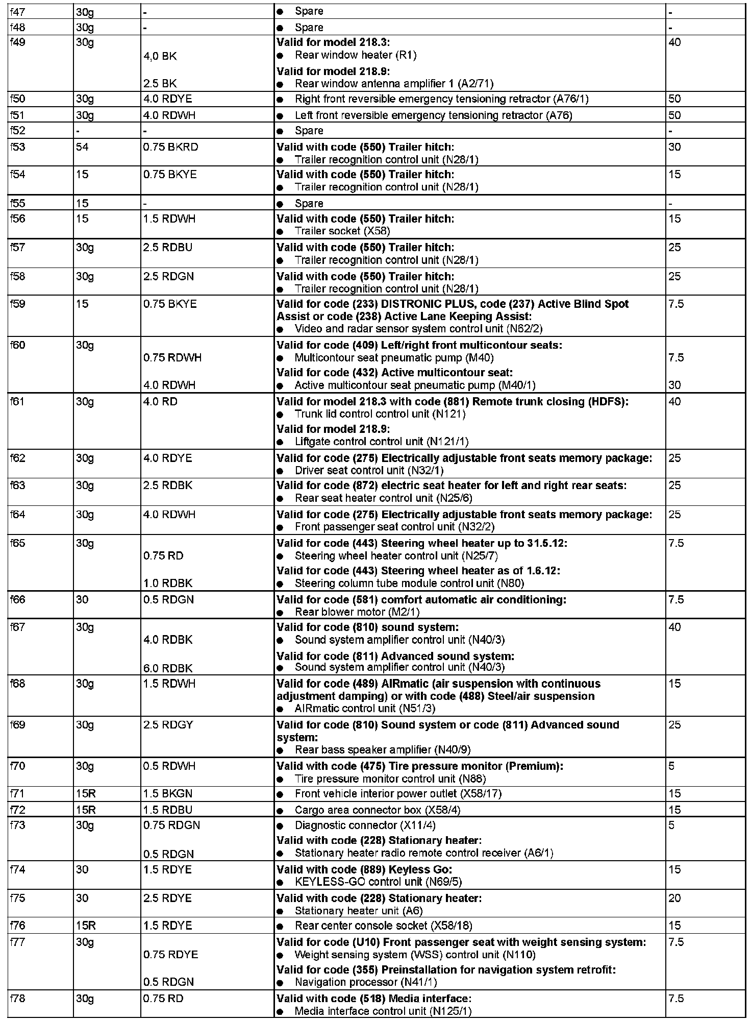 GF54.15-P-1256-06FQ Fuse Assignment of Fuse and Relay Box In Trunk