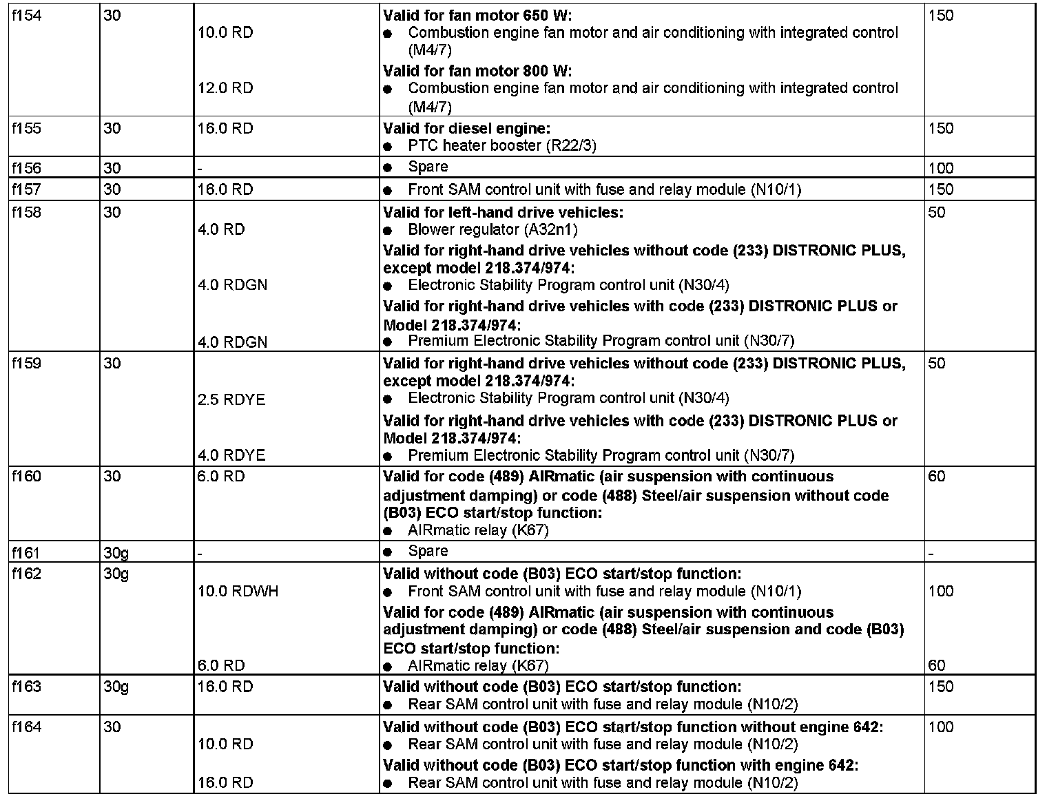 GF54.15-P-1256-07FQ Fuse Assignment of Front Prefuse Box
