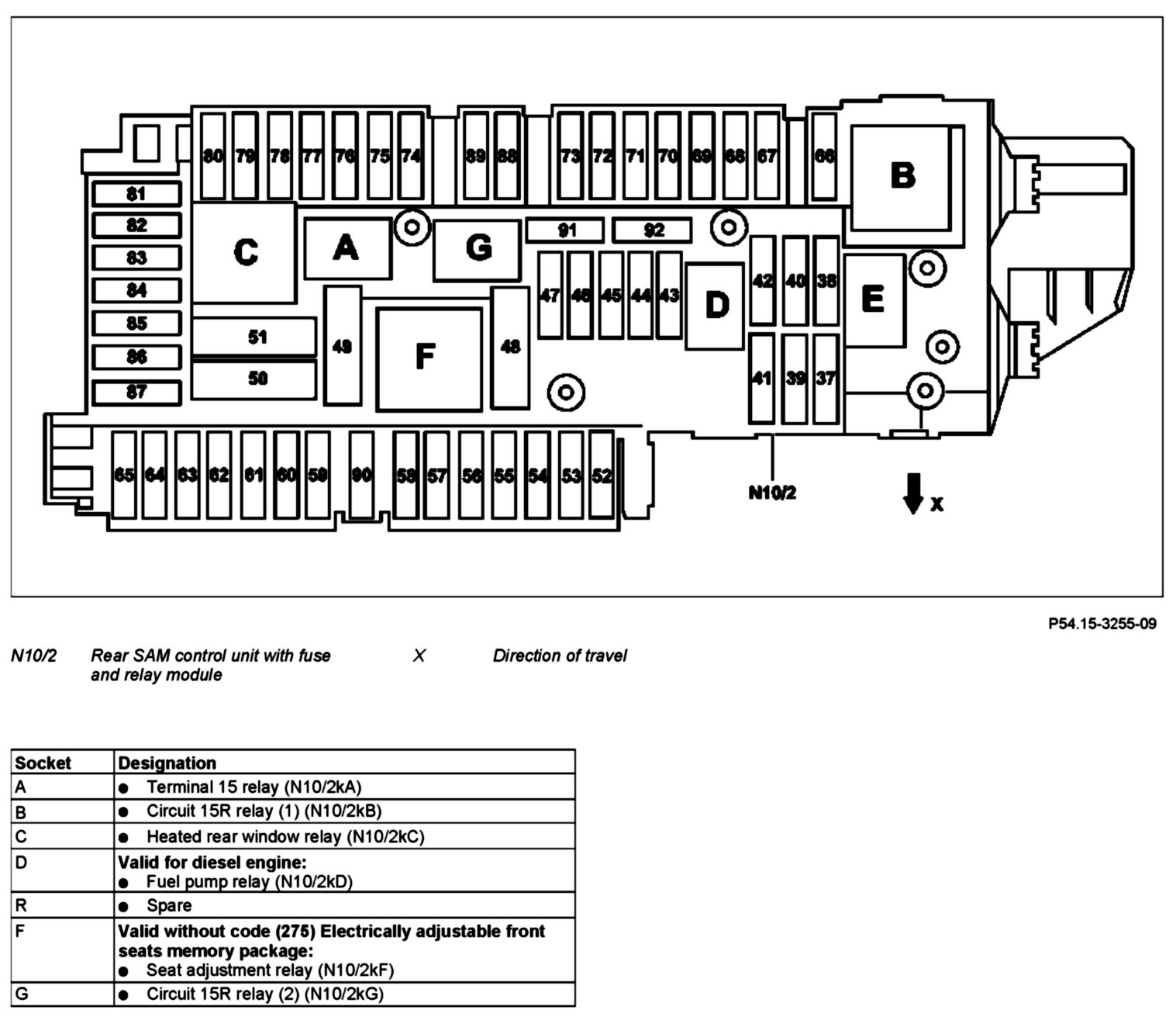 GF54.15-P-1257-04FQ Relay Assignment of Fuse and Relay Box In Trunk