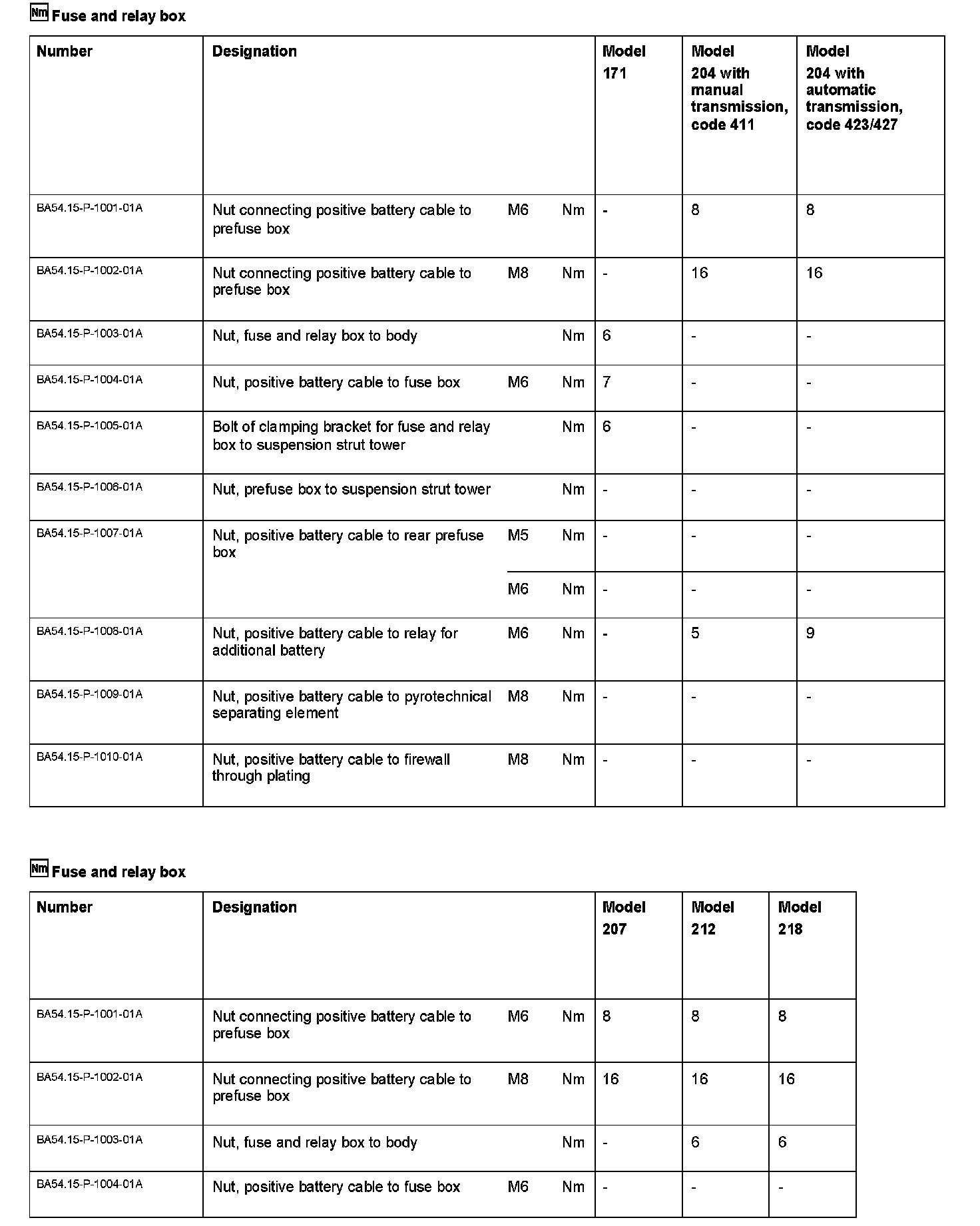 Model 171, 204, 207, 212, 218, 230