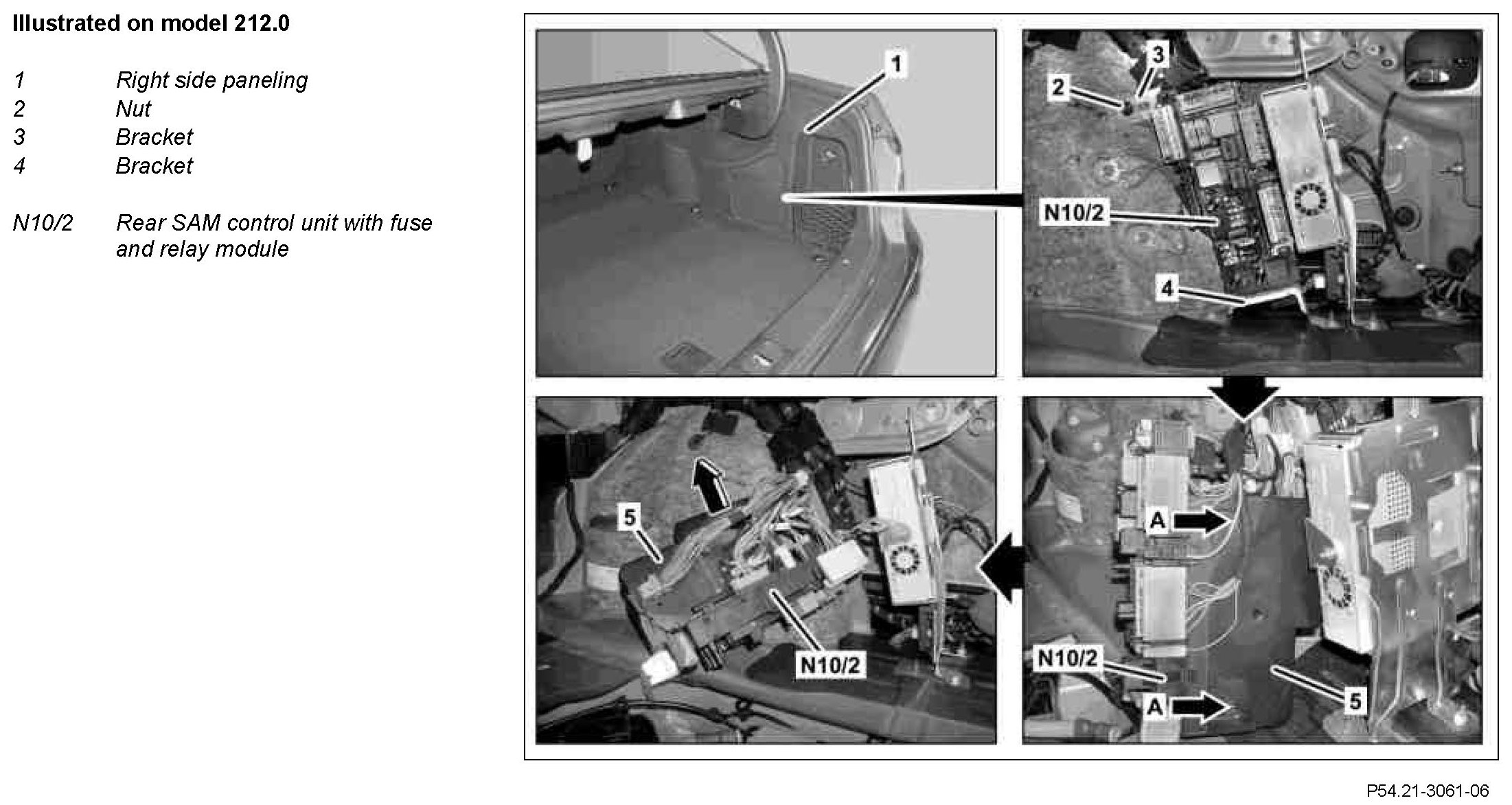 AR54.21-P-1258EW Remove/install SAM Control Unit With Fuse And Relay Box In Trunk