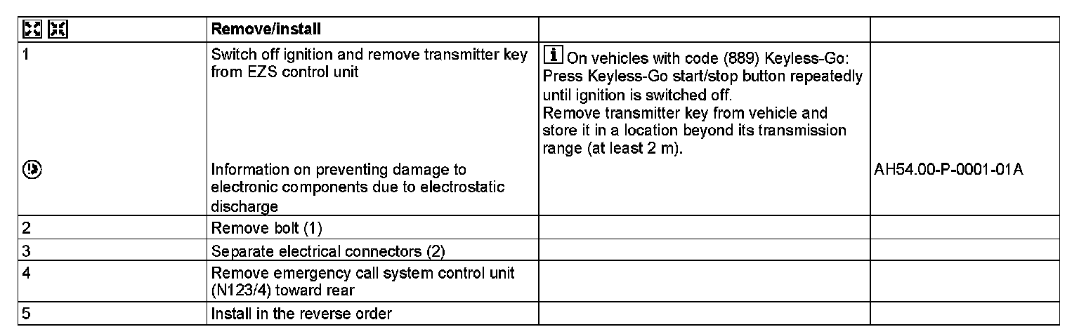 AR82.95-P-0005EL Remove/Install Control Unit For TELE AID Emergency Call System