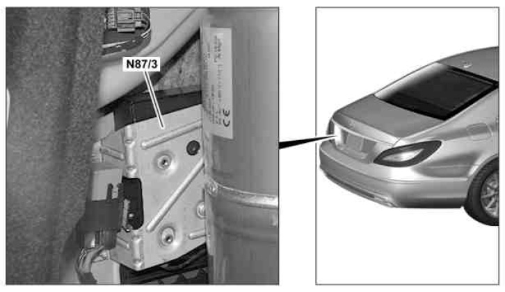 The Digital Audio Broadcasting control unit is located in the trunk at the left behind the trim on the sidewall.