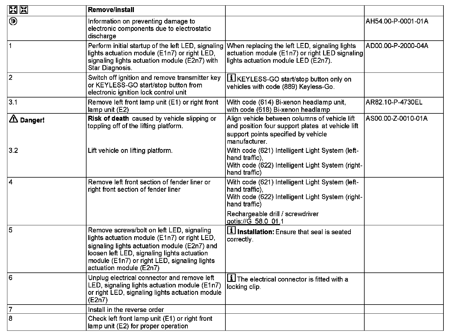 With code (621) Intelligent Light System (left-hand traffic), With code (622) Intelligent Light System (right-hand traffic)