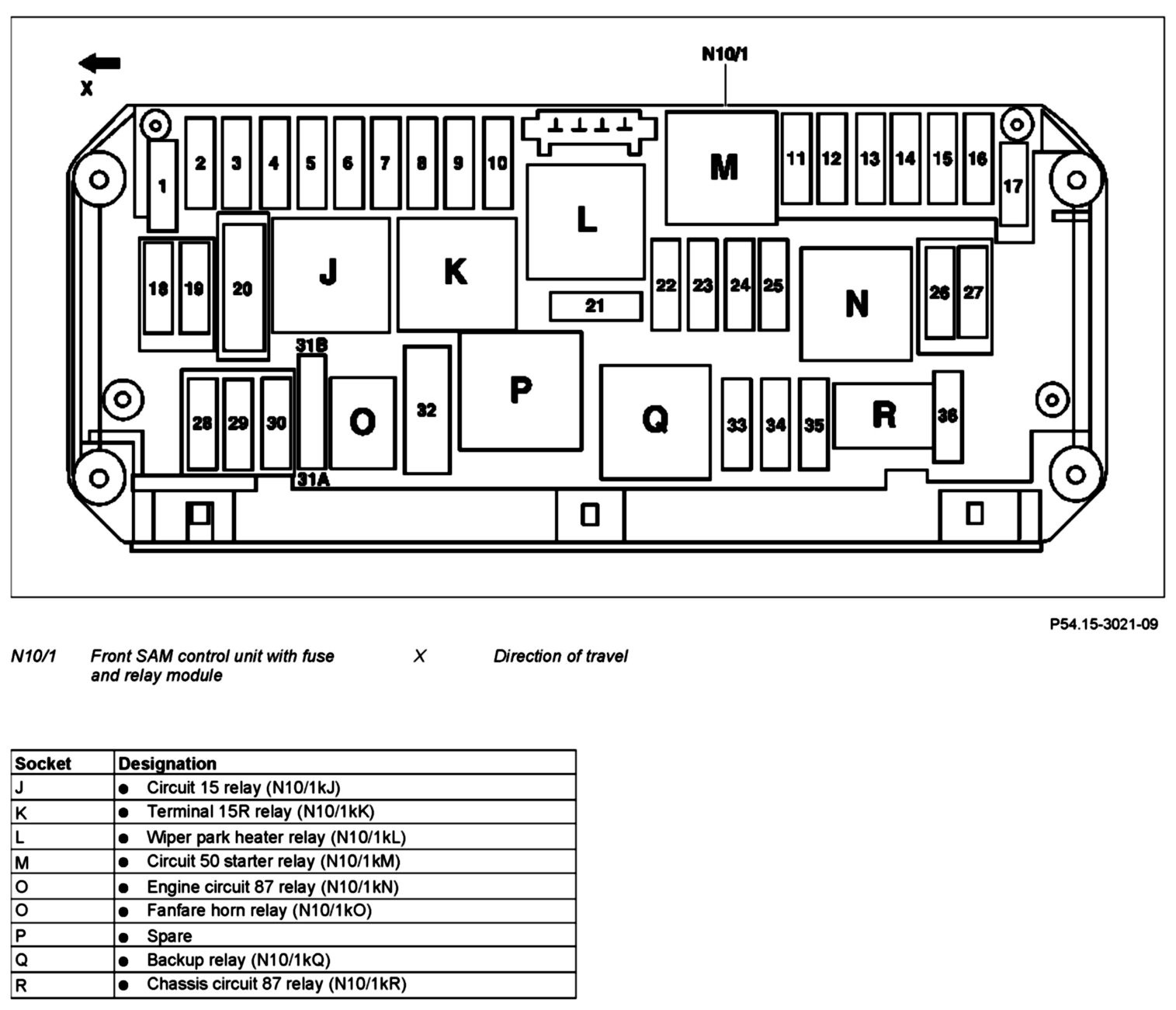 GF54.15-P-1257-03FQ Realy Assignment of Fuse and Relay Box In Left Side Engine Compartment
