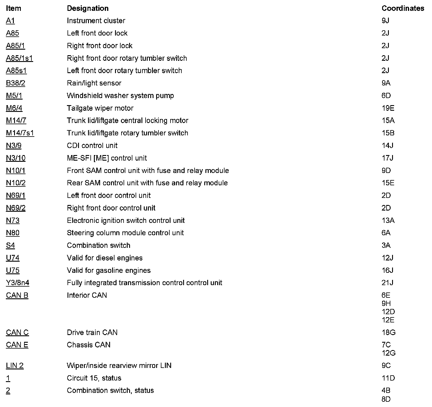 Component Locations: Component Location photographs can be found via their component names at the vehicle level. Locations