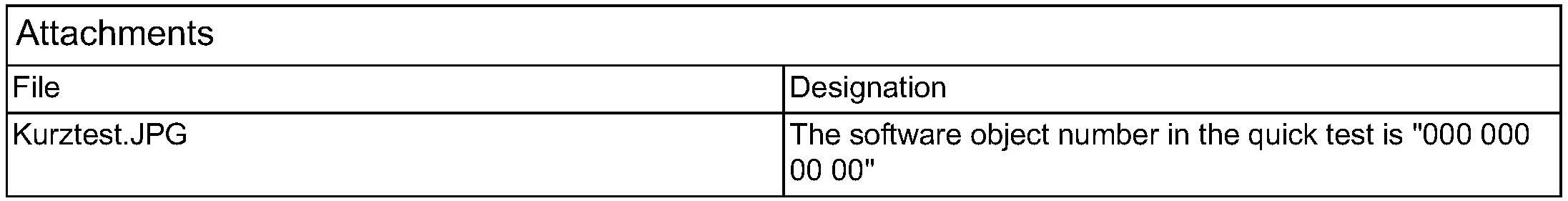 In the quick test the software object number "000 000 00 00" is displayed.