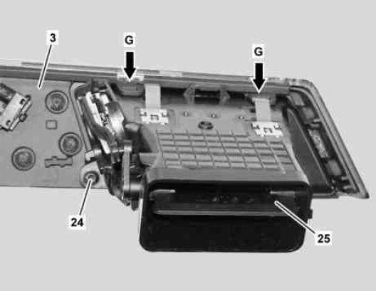 7 Unclip right air vent (25) and remove passenger-side trim part (3).