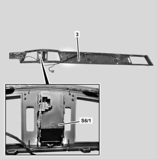 12 Unclip instrument panel switch group (S6/1) and remove passenger side trim part (3)