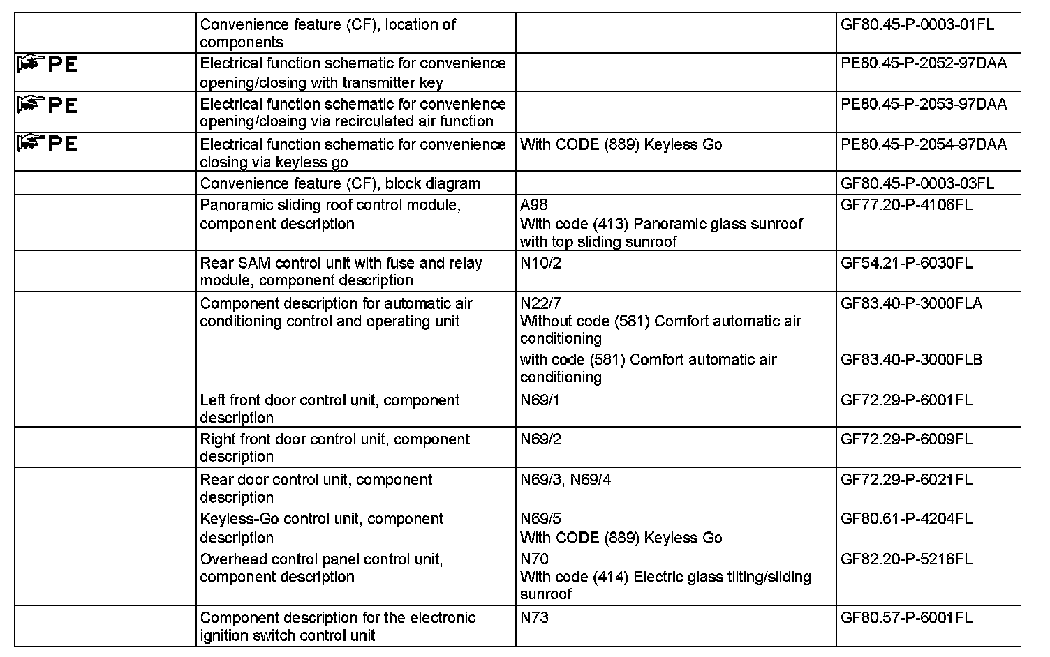 ^ Function sequence for convenience feature via KEYLESS GO door handle (with code (889) Keyless Go)