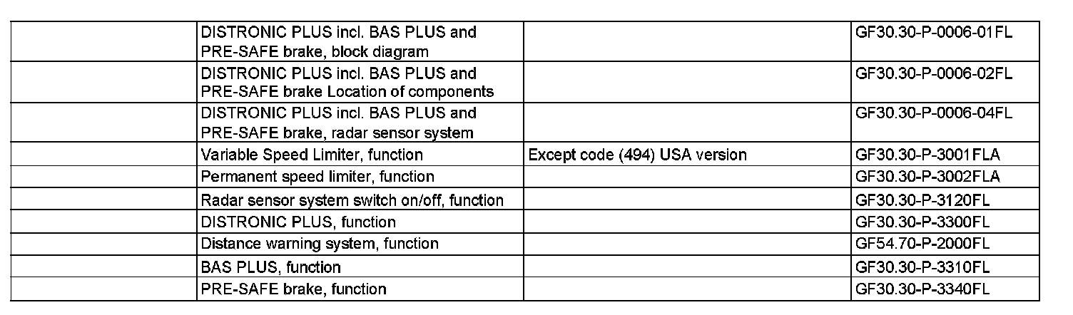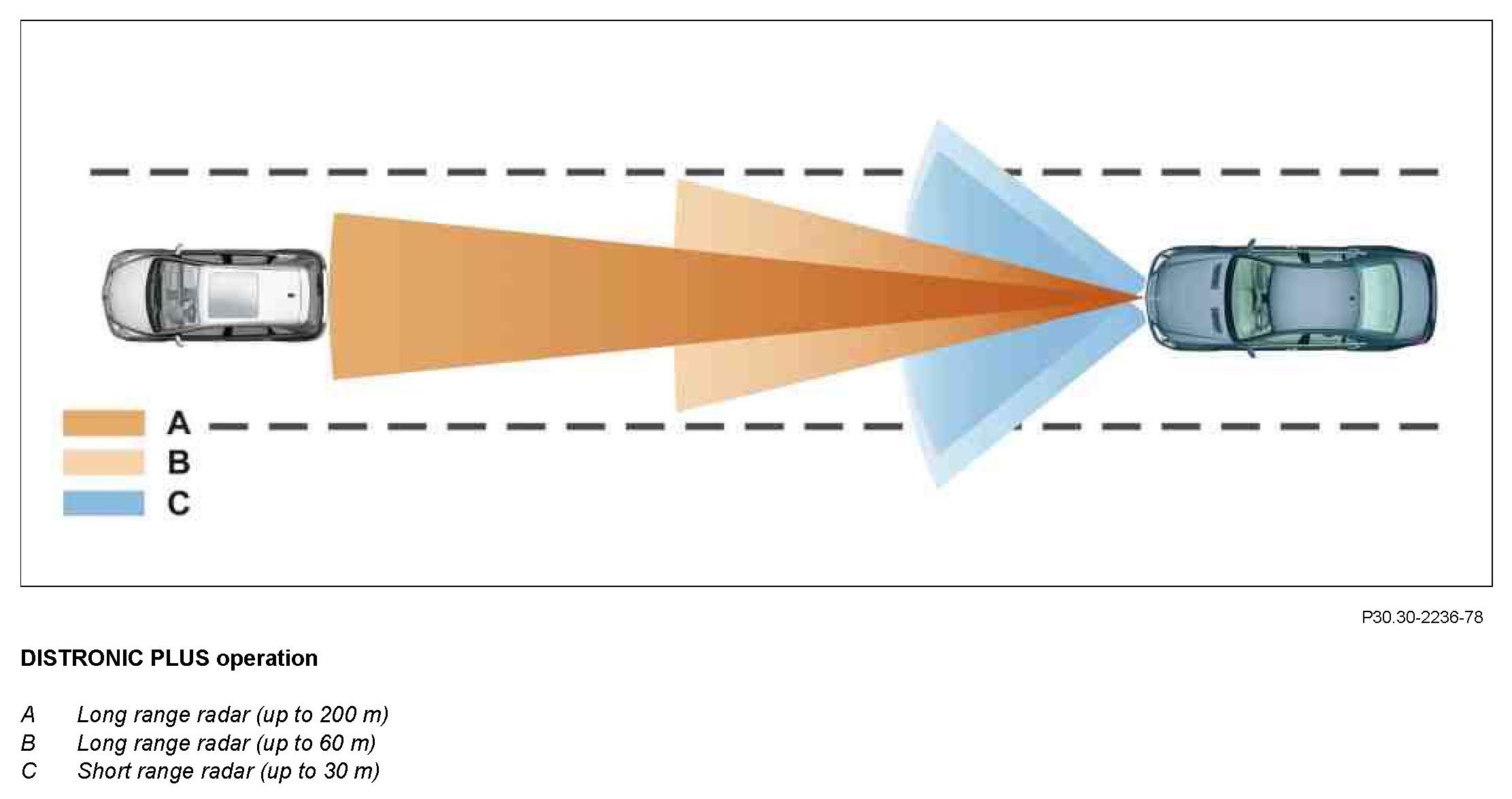 The systems described below belong to the driving assistance systems and are offered as special equipment (SA) under the designation DISTRONIC PLUS with code 233.