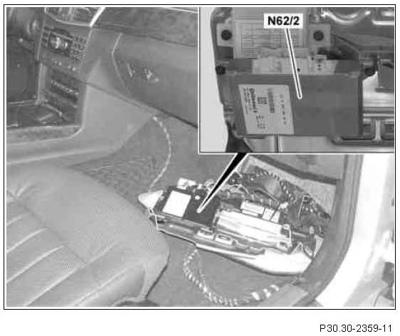 The video and radar sensor system control unit is located at the front right in the front passenger footwell under a cover.