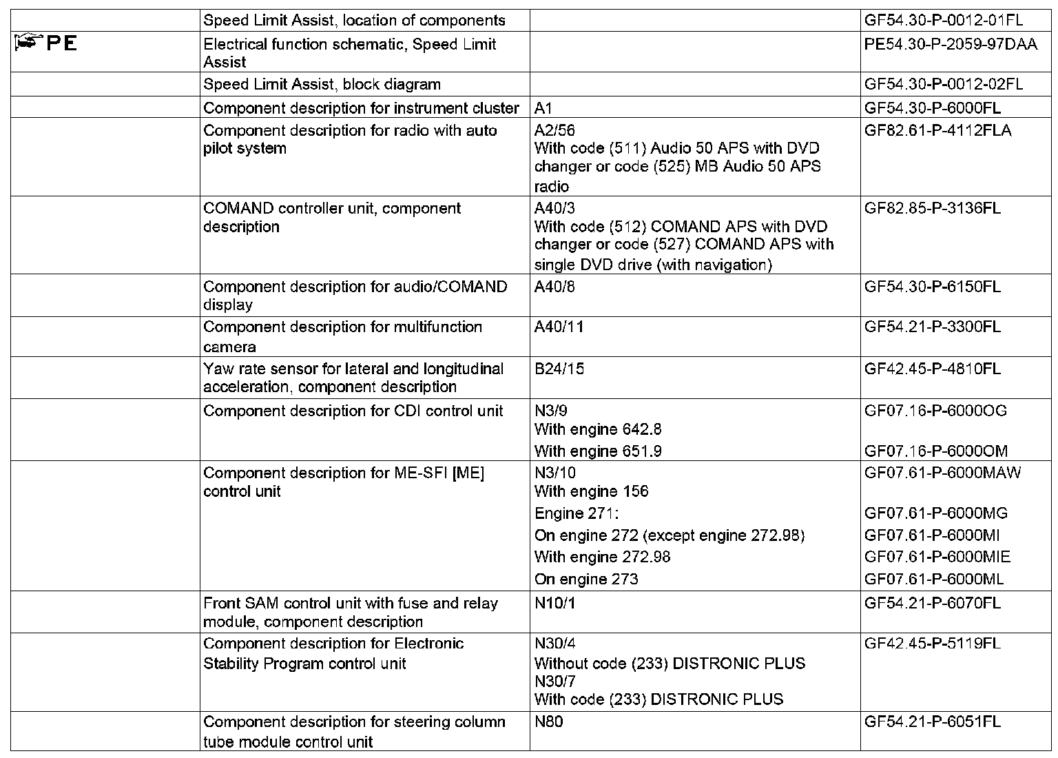 These are read in and evaluated by the radio with Auto Pilot System (A2/56) (with code (511) 50 APS Audio incl. DVD changer or code (525) MB Audio 50 APS radio) or by the COMAND controller unit (A40/3) (with code (512) COMAND APS incl. DVD changer or code (527) COMAND APS with Single DVD drive (with navigation)).