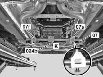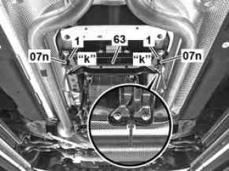 "k" Check bores for the suspension (third threaded hole from rear, of the two bolts on the rear engine crossmember)
