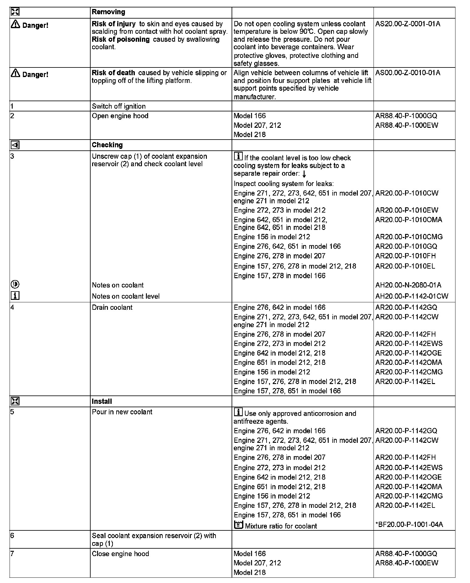ENGINE 157, 276, 278, 642, 651 in MODEL 166