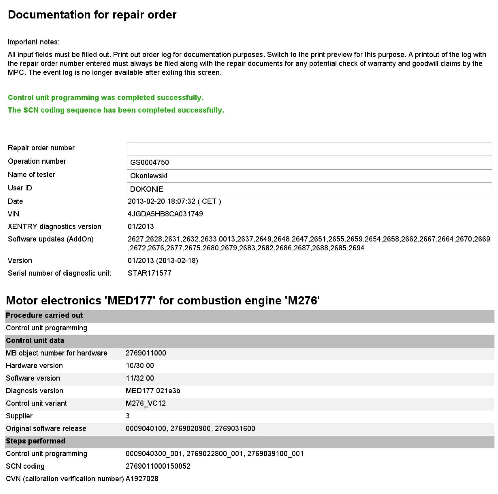 Refer to examples of engine flash software update on 166.057 model.