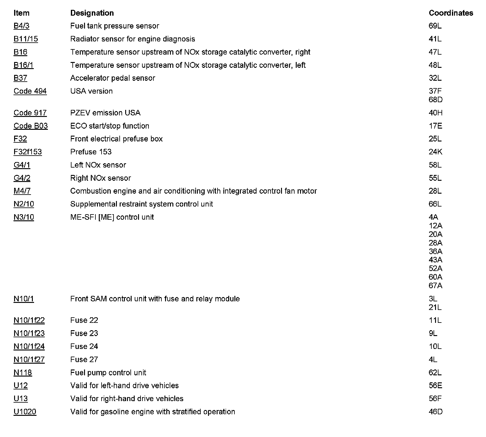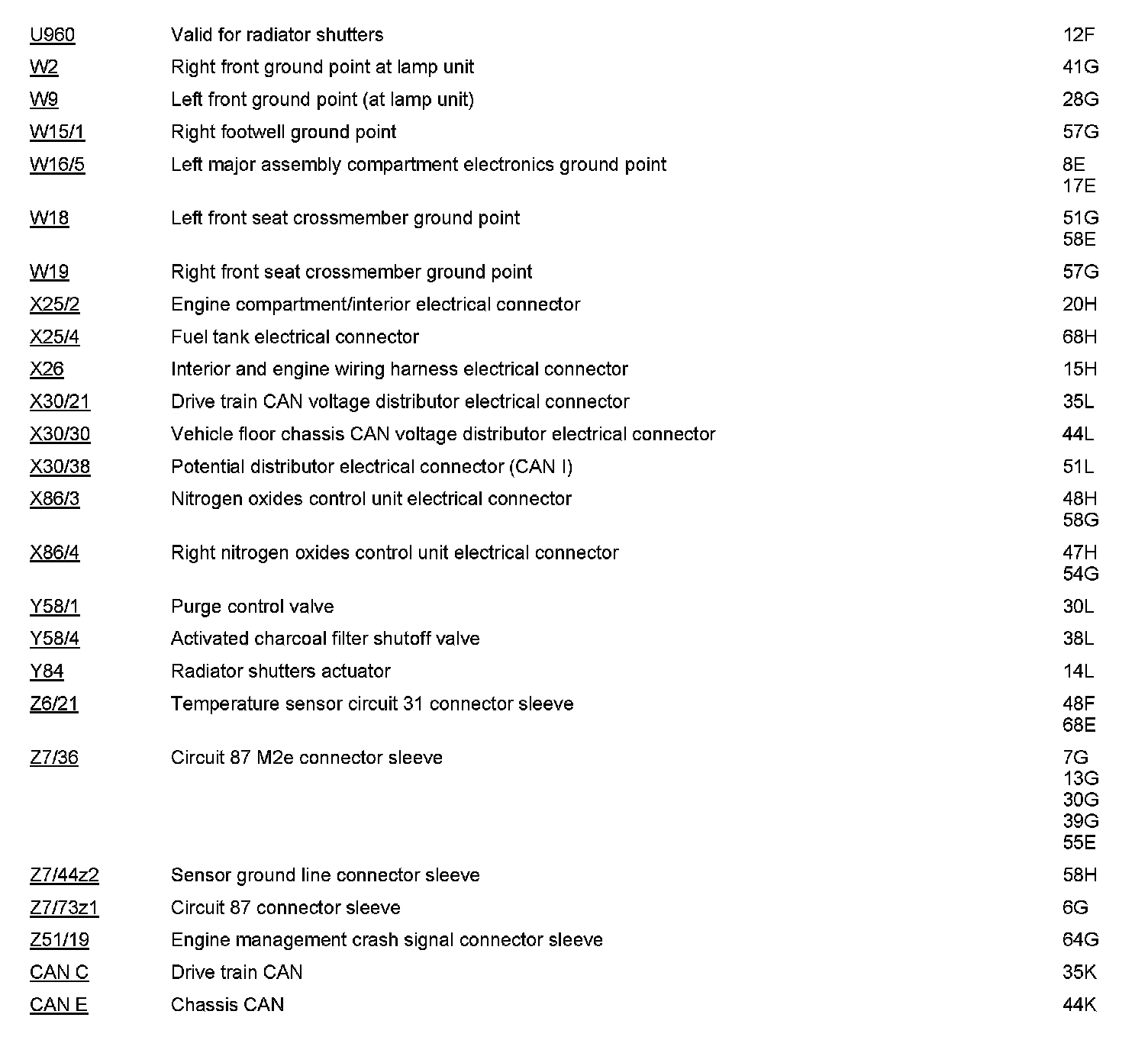 Component Locations: Component Location photographs can be found via their component names at the vehicle level. Locations