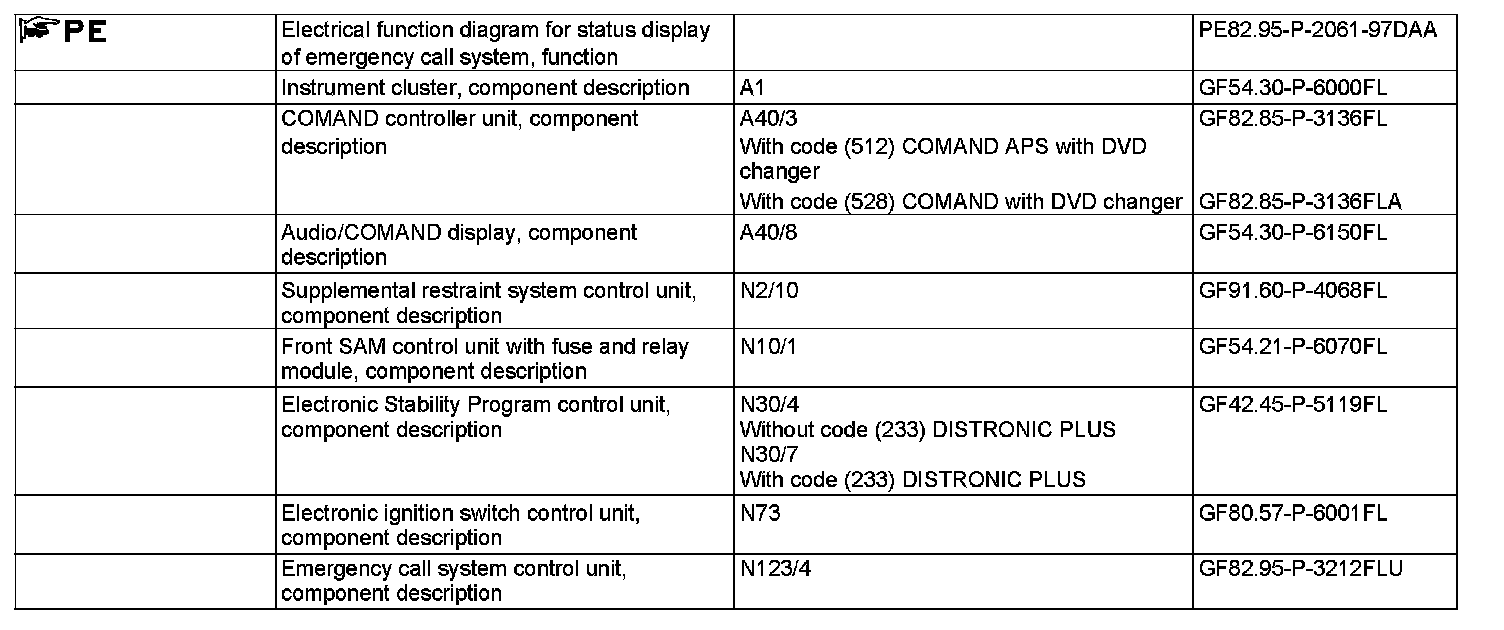 After triggering a manual emergency call using the emergency call system button, the emergency call system control unit intermittently actuates one of the two red light-emitting diodes integrated in the emergency call system button via a direct line. This is also indicated in the instrument cluster in the Audio/COMAND display. This is displayed on the instrument cluster via the following route: