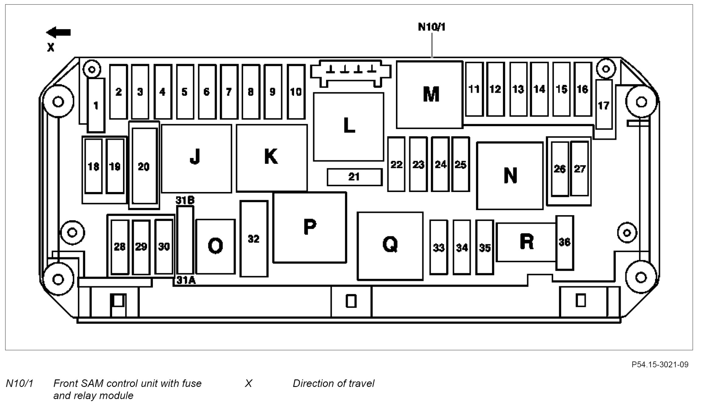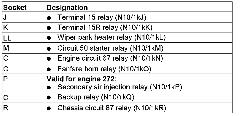 GF54.15-P-1257-03FL Relay Assignment Of Fuse And Relay Box In Left Side Of Engine Compartment
