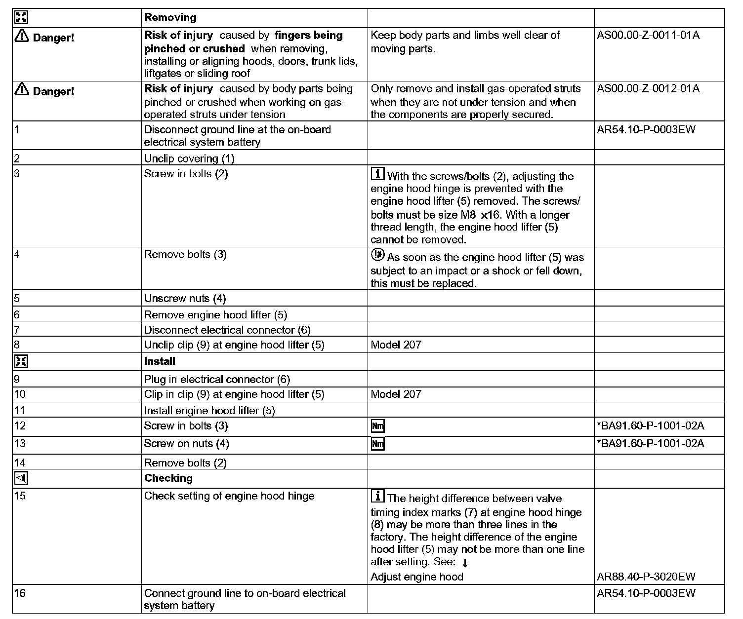 AR91.60-P-0900EW Remove/Install Engine Hood Lifter