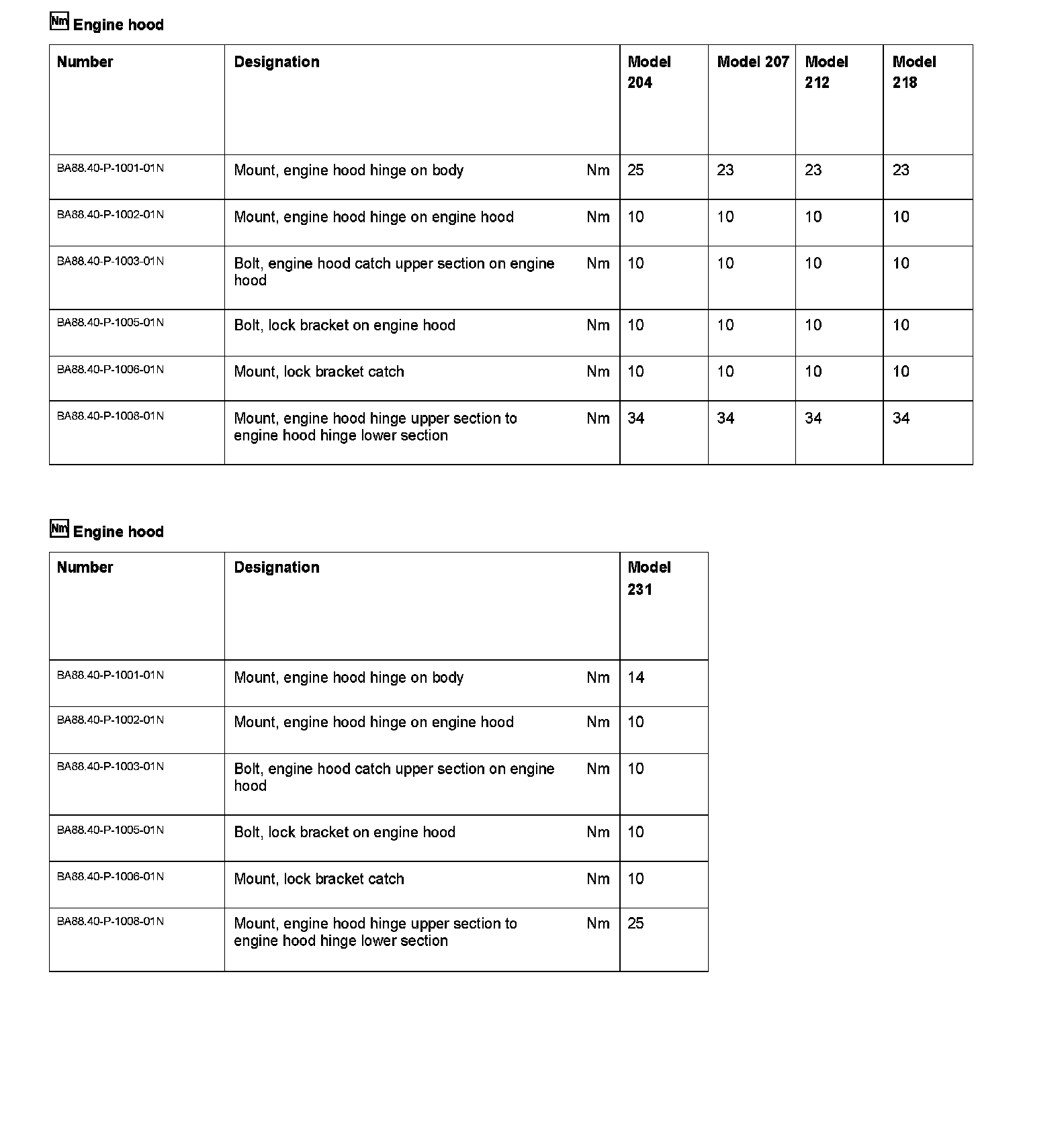 Model 204, 207, 212, 218, 231