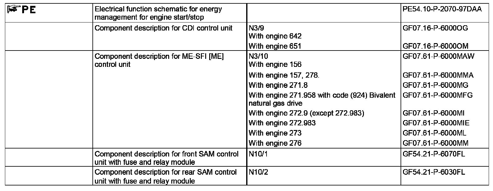 The master control unit for the engine start/stop function is the CDI control unit (N3/9) (with diesel engine) or the ME-SFI [ME] control unit (N3/10) (with gasoline engine) that records and evaluates all influencing factors.