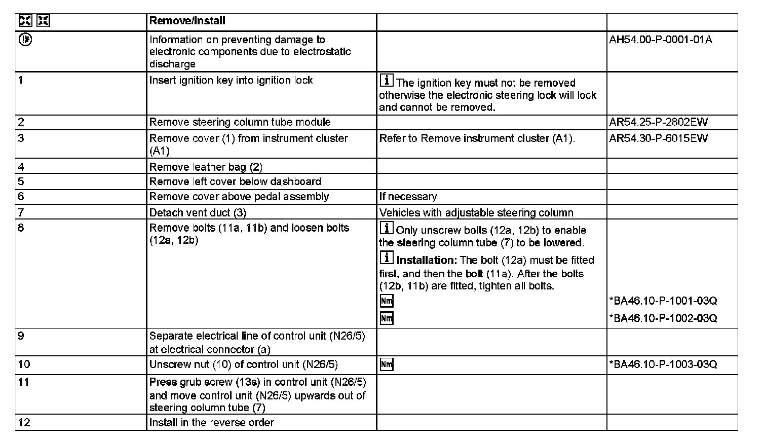 AR46.10-P-0910EW Remove/Install Electronic Steering Lock