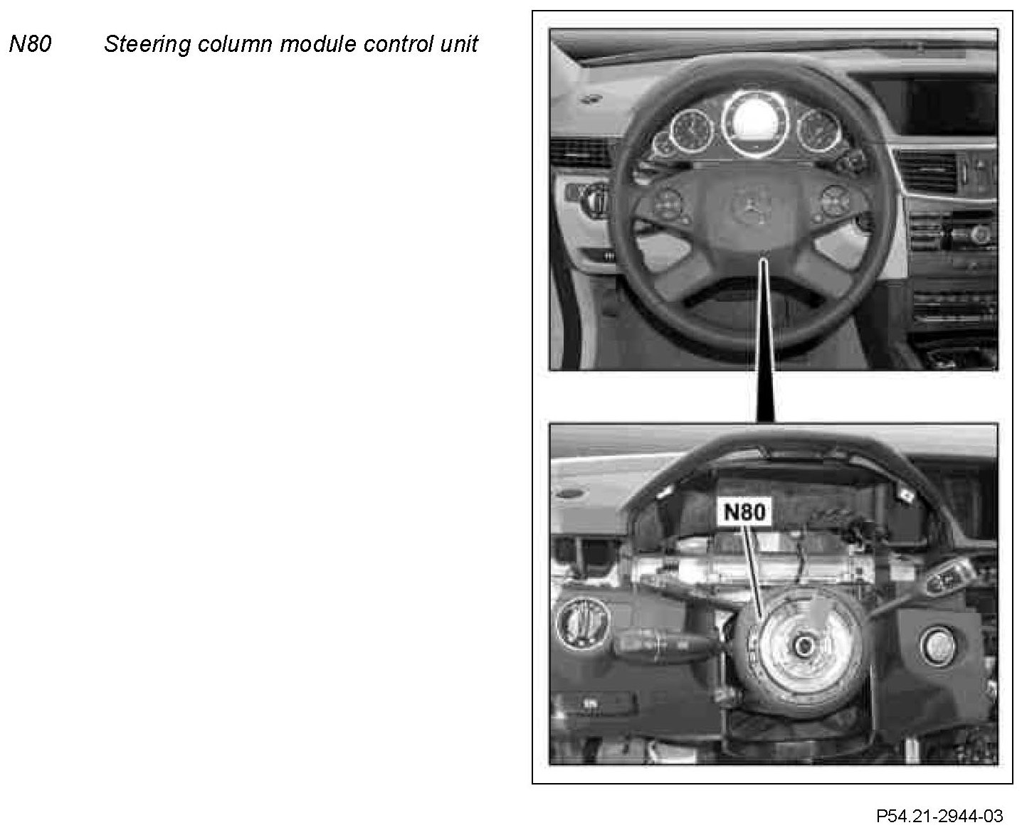 The steering column tube module control unit controls the data exchange between the controls on the MFL and the steering column with the corresponding control units that implement the functions.