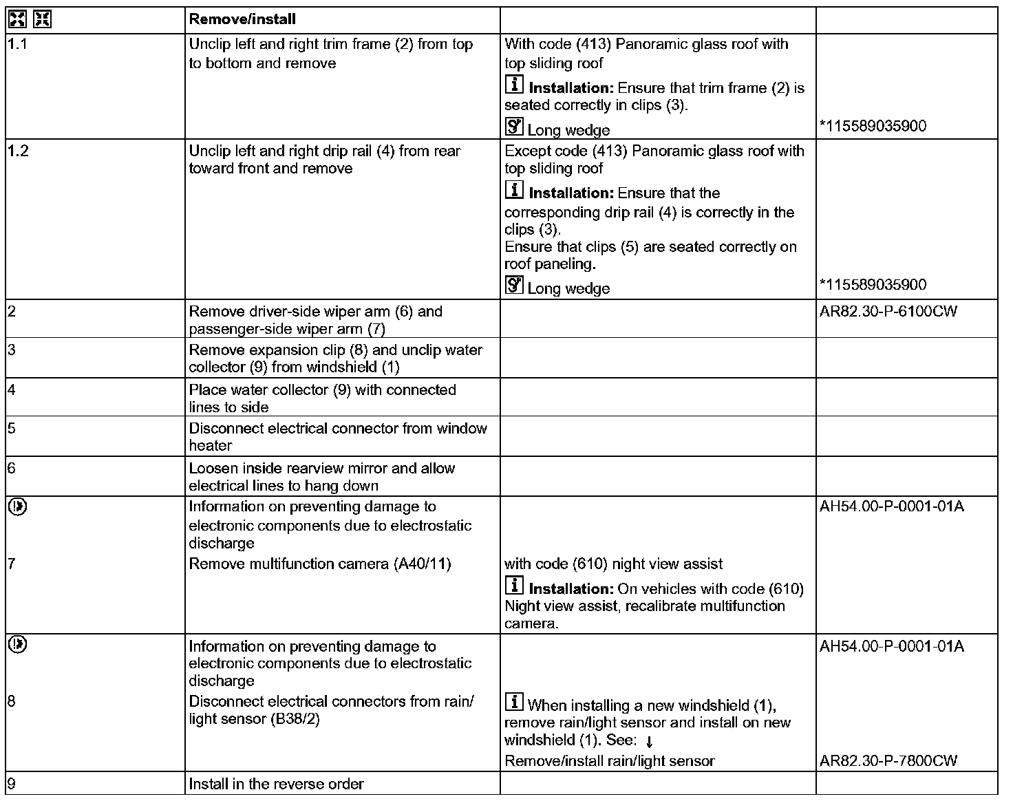 AR67.10-P-1050EW Remove/Install Detachable Parts When Replacing Windshield