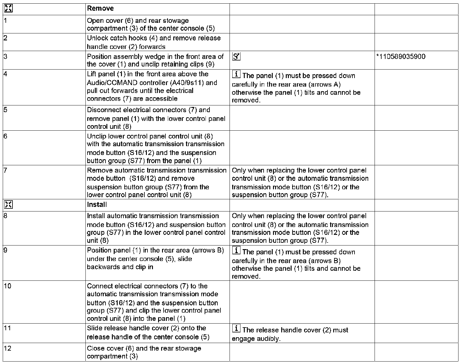 AR54.21-P-1263EW Remove/Install Lower Control Panel Control Unit