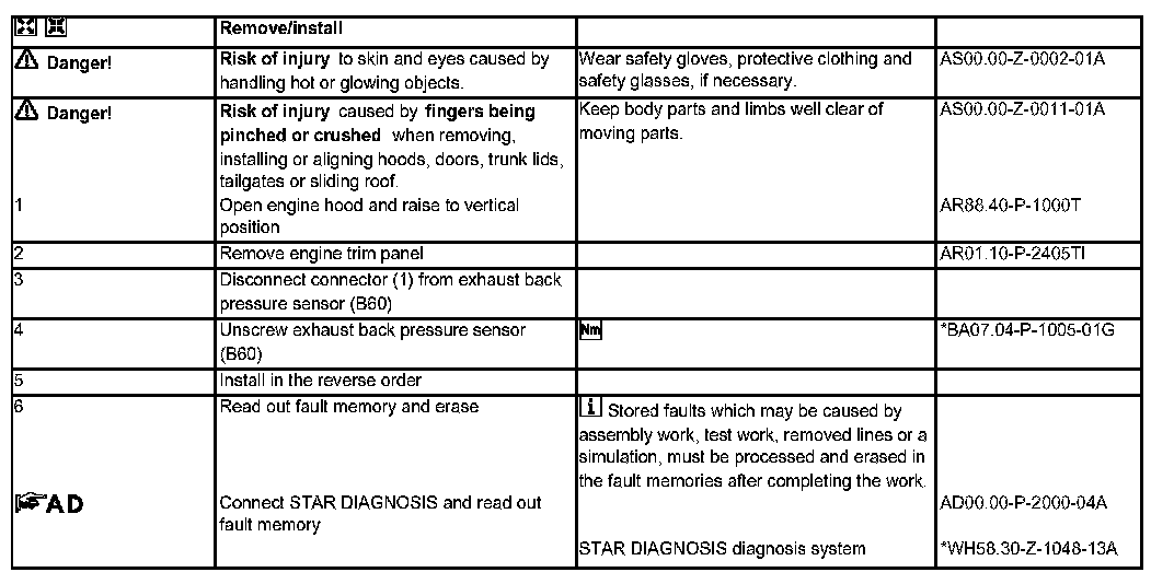 AR07.04-P-0007TK Remove/Install Exhaust Back Pressure Sensor