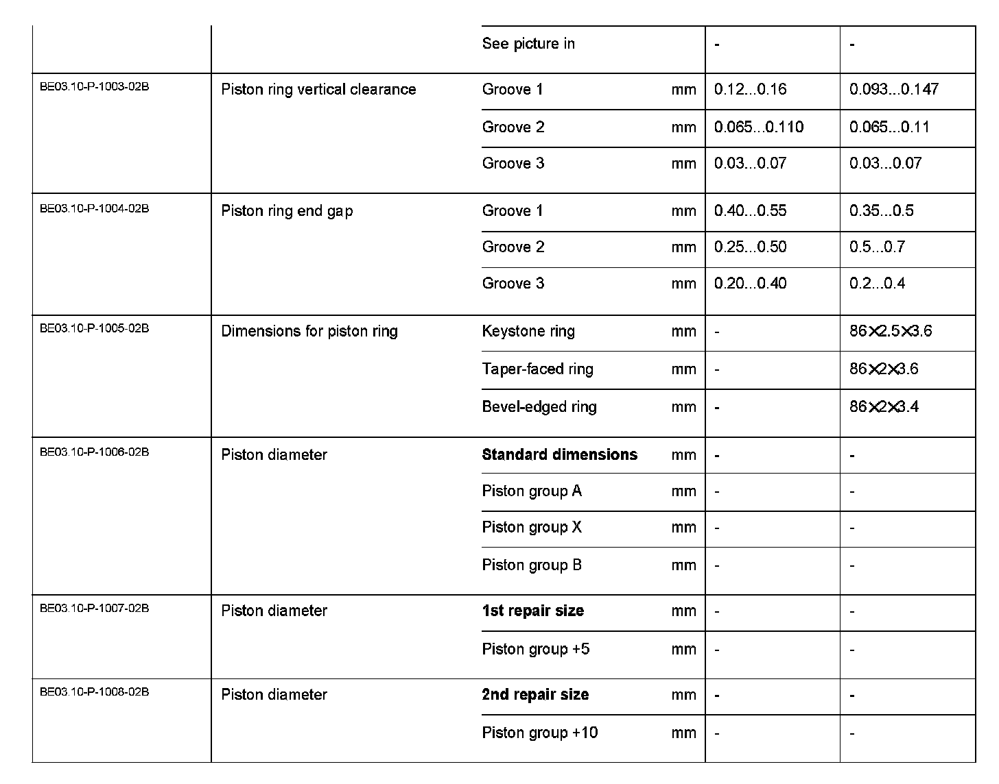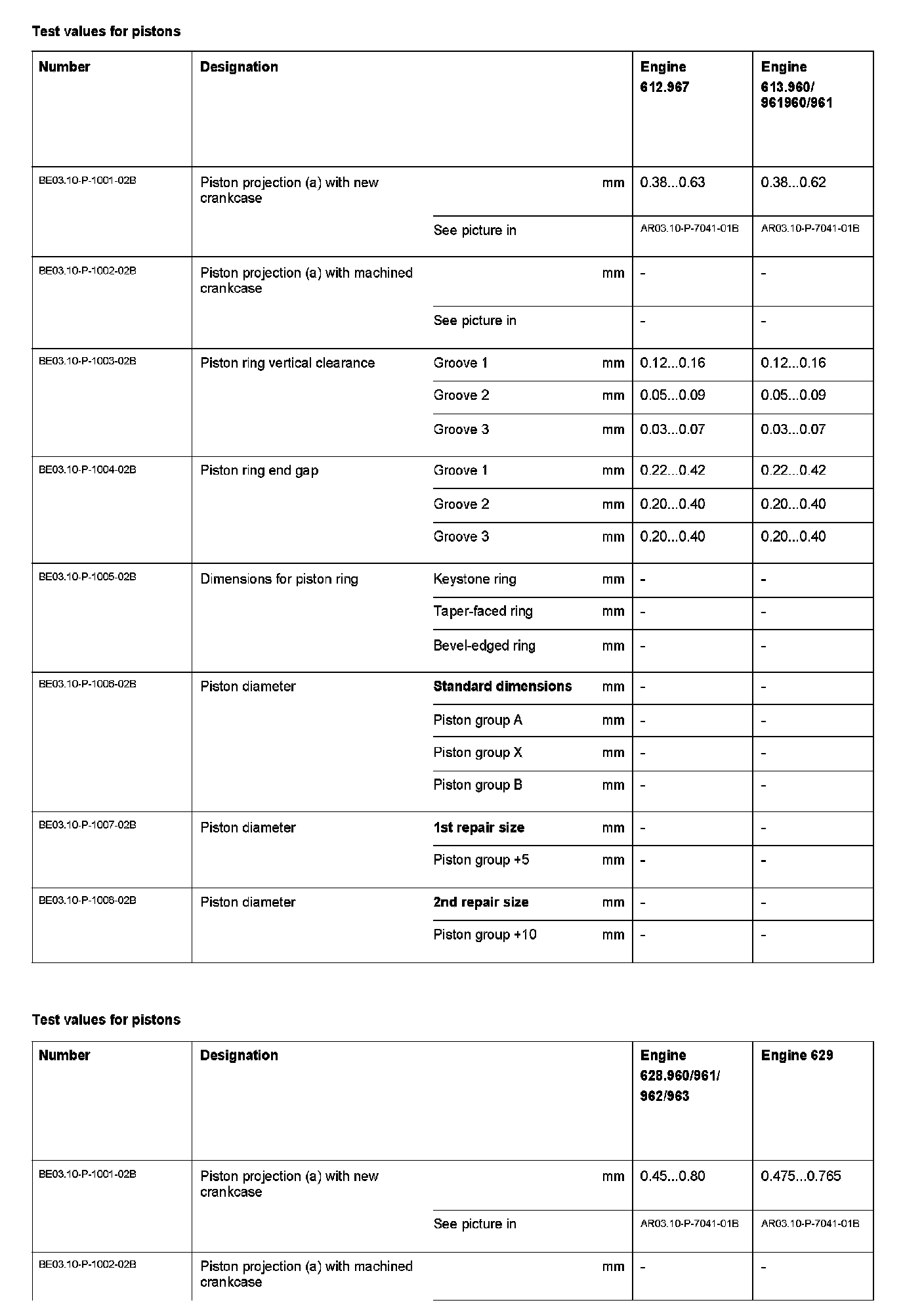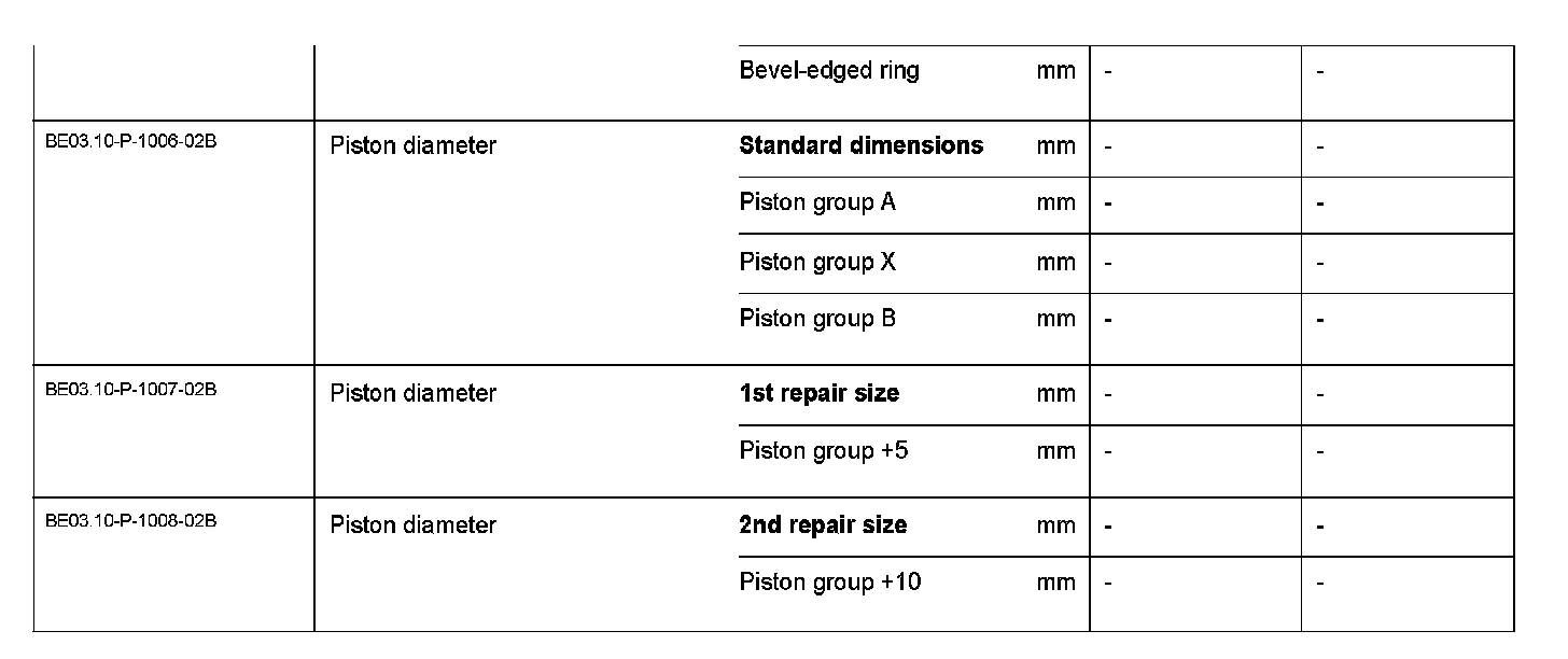 BE03.10-P-1000-02B Test Values For Pistons