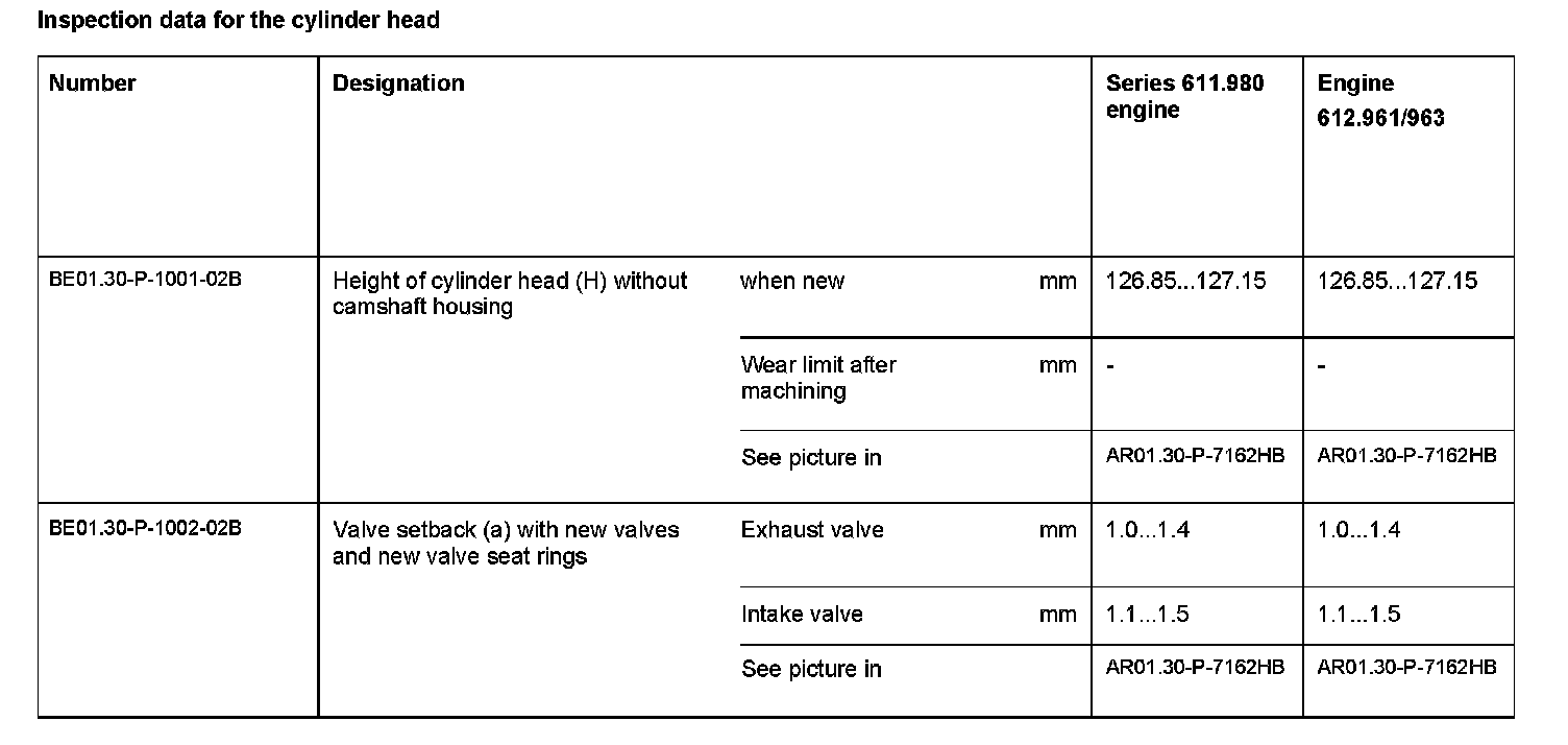BE01.30-P-1000-02B Inspection data for cylinder headInspection data for the cylinder head: