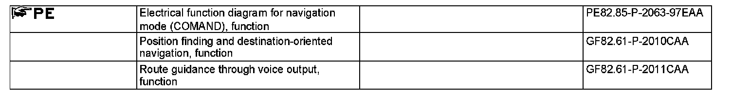 The navigation processor integrated into the COMAND controller unit calculates the data entered for reaching the destination (navigation). Further subfunctions are described in separate documents: