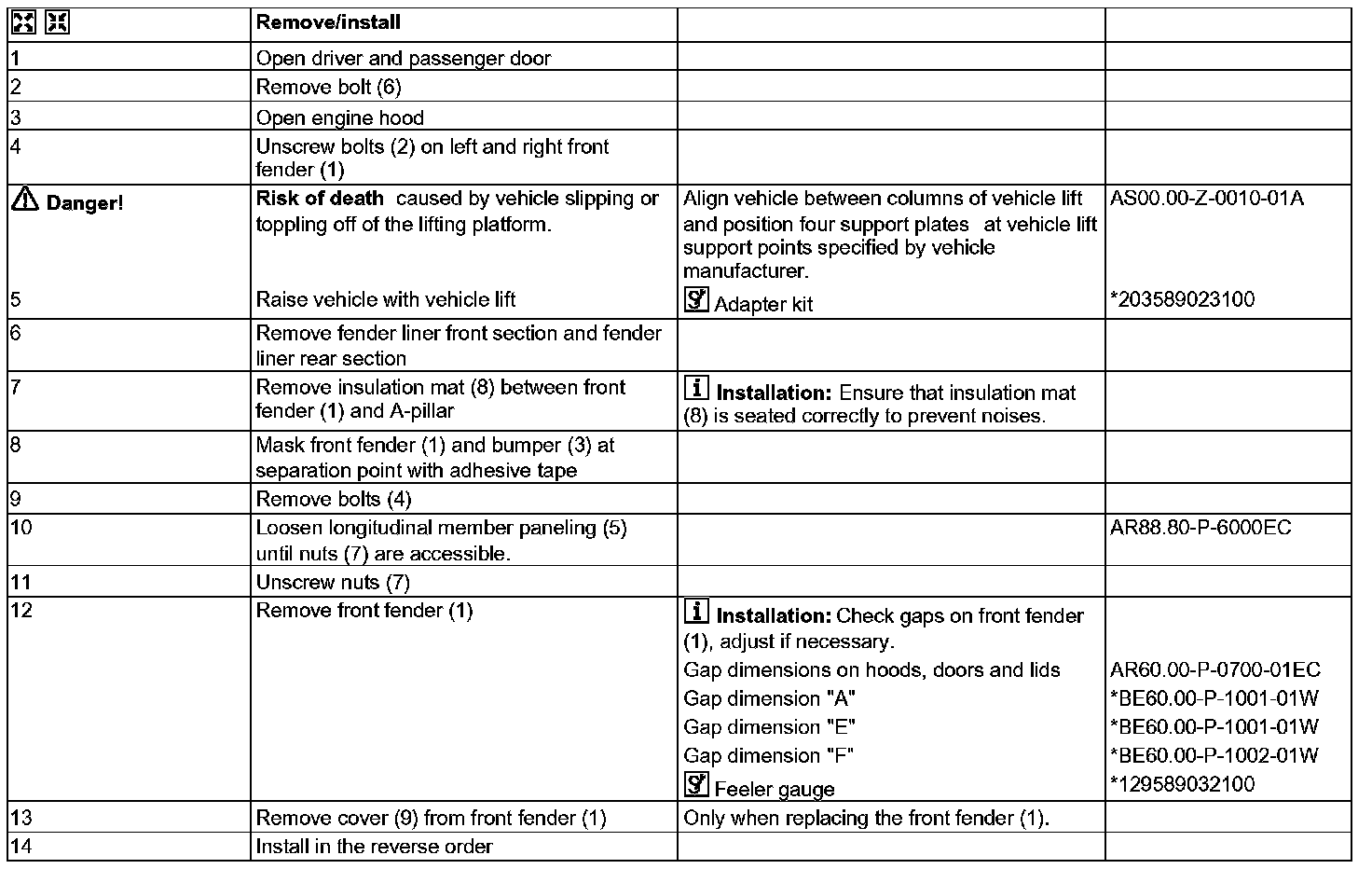 AR88.10-P-1000EC Remove/Install Front Fenders