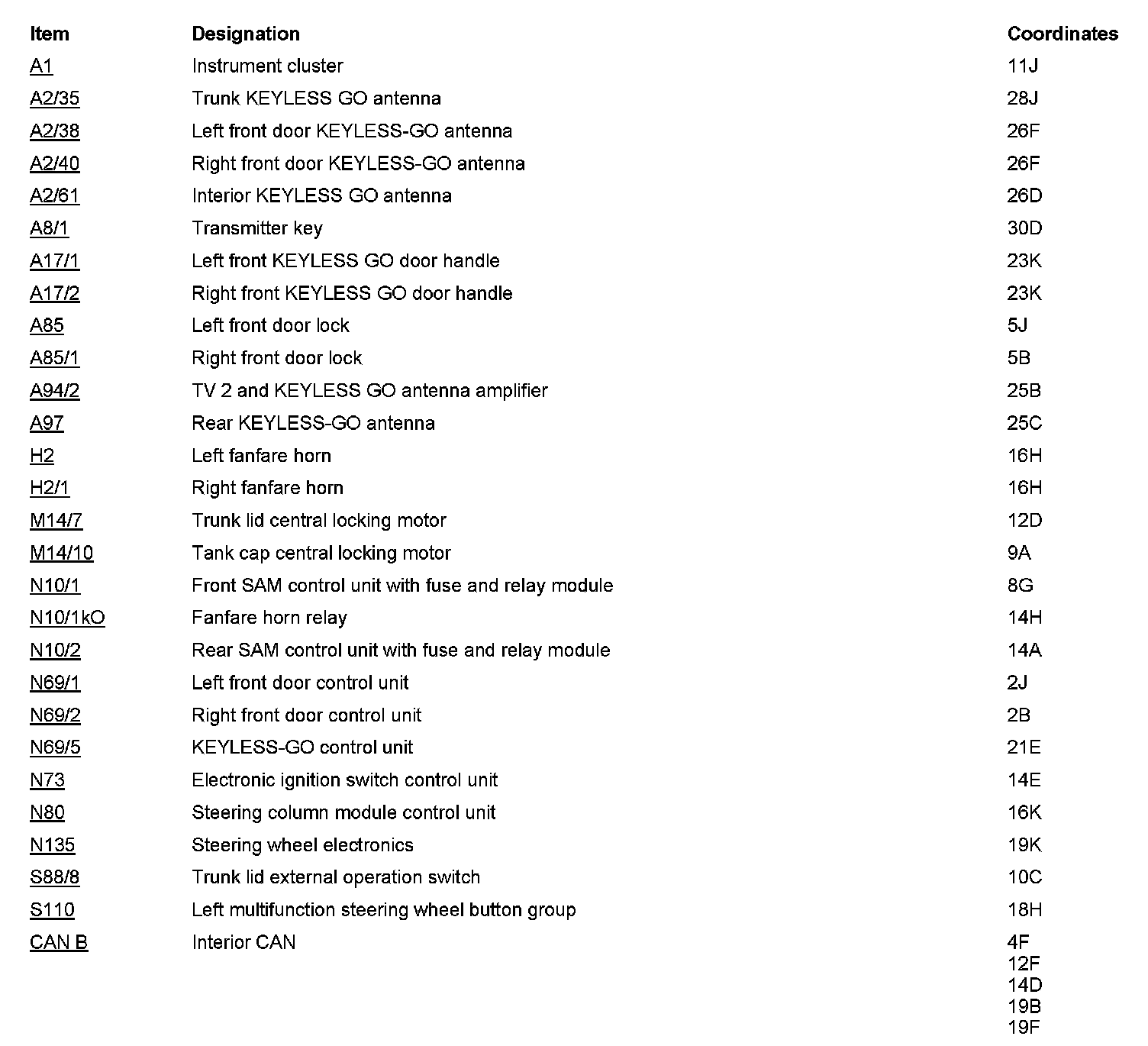 PE80.61-P-2051EAA Electrical Function Schematic For Keyless-Go Locking and Unlocking
