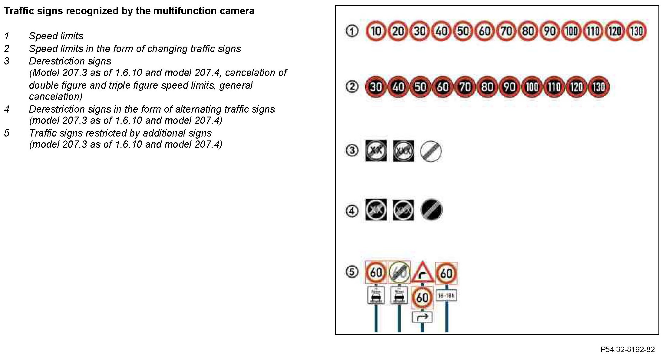 - Speed limits, restricted by additional signs (model 207.3 as of 1.6.10 and model 207.4)
