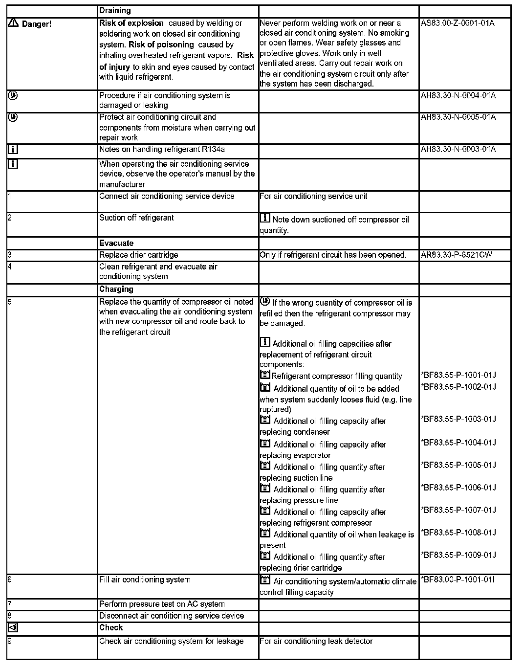 AR83.30-P-1760CW Drain, Evacuate And Refill Air Conditioning, Check Function And Check For Leaks