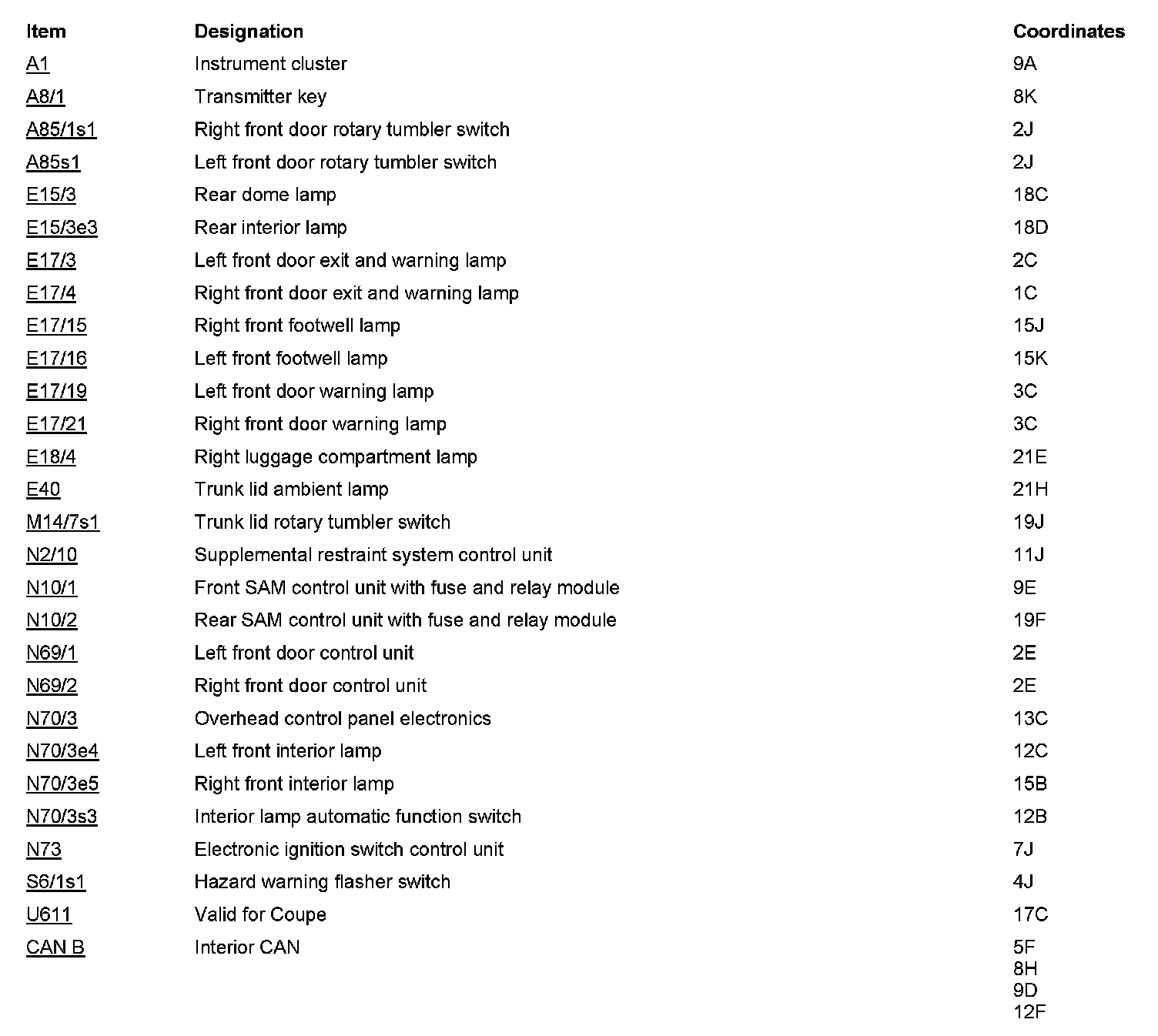 PE82.20-P-2052EAA Automatic Interior Lights Control Electrical Function Schematic