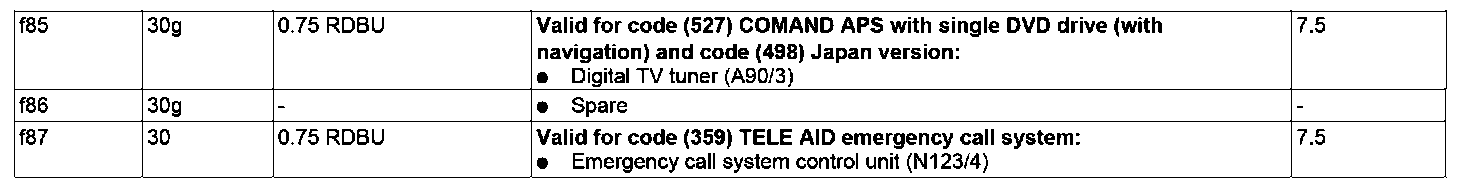 GF54.15-P-1256-06CA Fuse Assignment of Fuse and Relay Box In Trunk
